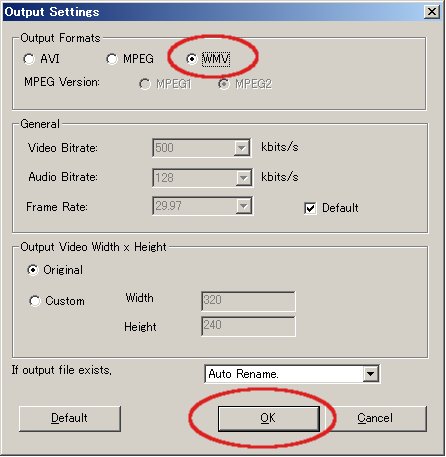 4.Output Formats を "WMV"へ変更しOKボタンを押下します。