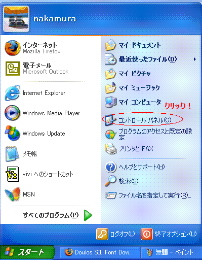 上記(2)にて解凍されたファイル "DoulosSILR.ttf"を "フォント"に複写します。図7:フォントのインストール