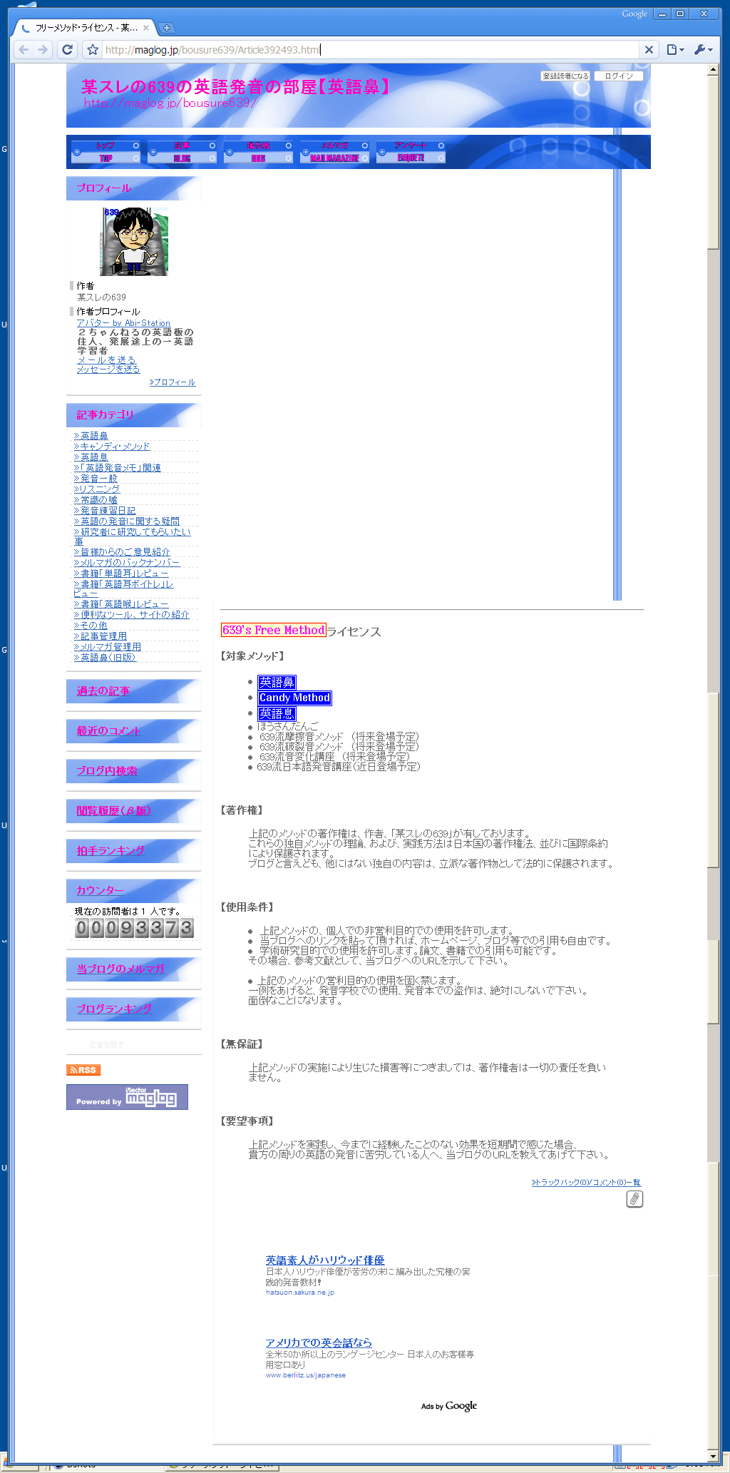 当ブログの「フリーメソッド・ライセンス」のページのスクリーンショットを撮ってみました。