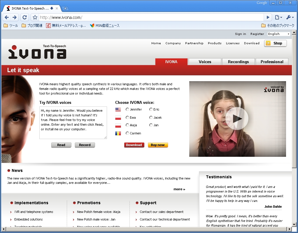 IVONAはテキスト、WEBページ等を読み上げてくれる商用ソフトです。