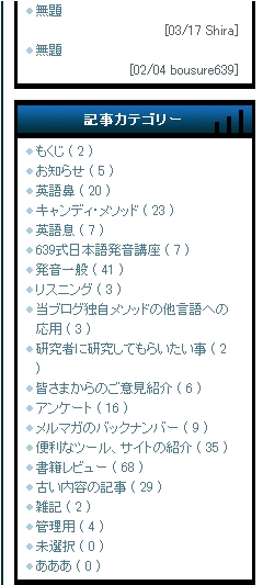 下記の図は、「記事カテゴリー」をクリックすることで、「記事カテゴリー」が展開されている様子です。