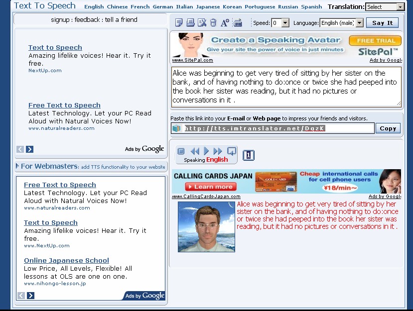 それ以外にも、任意の文を任意の言語へ翻訳し、即座に其れを読ませることも可能です。