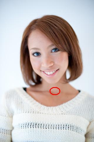 3 | 上記2を実行時、下記の通りになっているか確認すること。 (1)写真2-1の両方の鎖骨が交わる地点の窪み(赤丸の箇所)が弛緩する。 写真2-1 ※フリー素材サイト「ASHINARI」の写真を使用しています。 (2)上記2の実践後は、図2-2の様に、口内の奥(青丸の箇所)の空間が広くなっている。 図2-2 実践前:口を閉じているか、「あ」、「う」、「お」などを発音している状態 実践後:上記2を実践しながら、声を出している状態 |