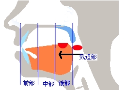 2 | (1)音の種類:仮想キャンディ (2)音の発生場所:気道部から口内後部への非常に素早い移動(図1の赤丸、赤半丸と黒矢印) (1)、(2)の両方満たす音を/w/だと強く思い込む。 |