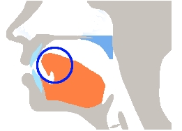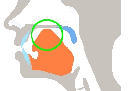 図3-2 を見て下さい。青の円で囲まれた、前方へ突き出す箇所が「エ」の音を作っています。