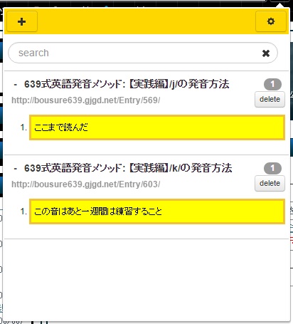 図3を見てください。付箋を管理する画面にて、付箋を削除できます。また、この画面から各付箋が貼られたページを表示することが可能です。