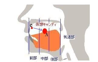 この母音だけに限らず、殆どの音については、口の形、唇の形、口の開け方の大きさ、顎の下げ方の大きさは、「小さい空間」(=仮想キャンディ)を口内に配置することによる影響です。
