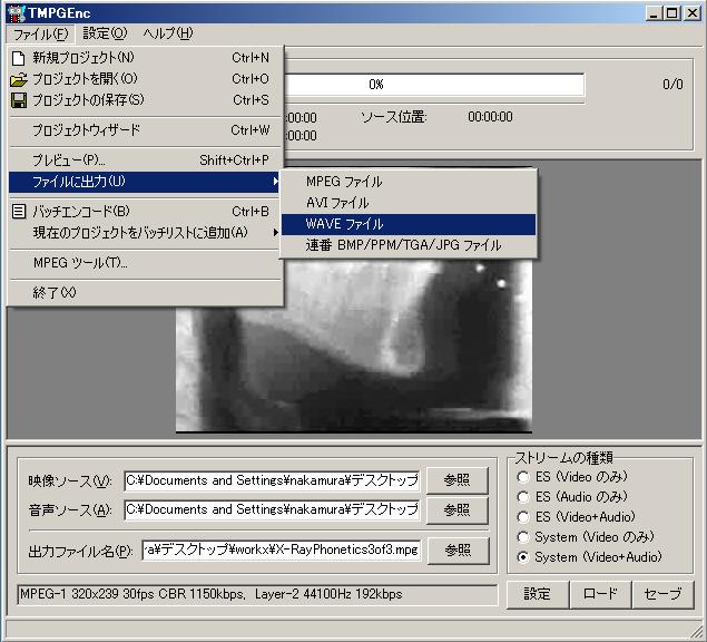 図1−1 TMPGEncを使い、WMVファイルから音声をWAVファイルへ出力する