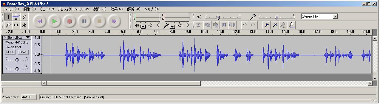 使用した音声は全て、"Bento Box"の文です。