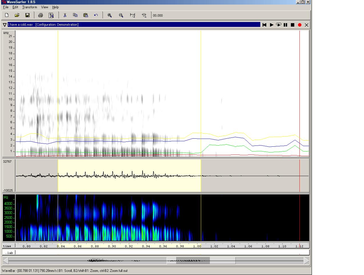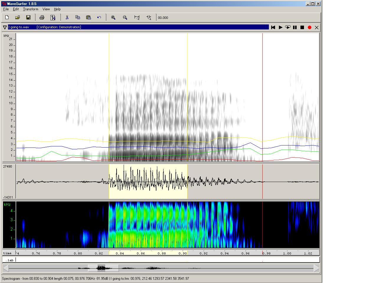 今回の記事で使用した wavesuferの画面は、「Configuration」として "Demonstration"を選択し、更に"Formant Plot"ペインを追加したものです。