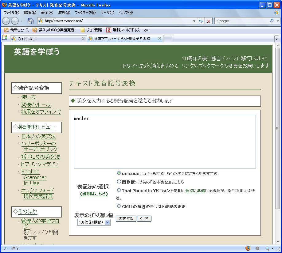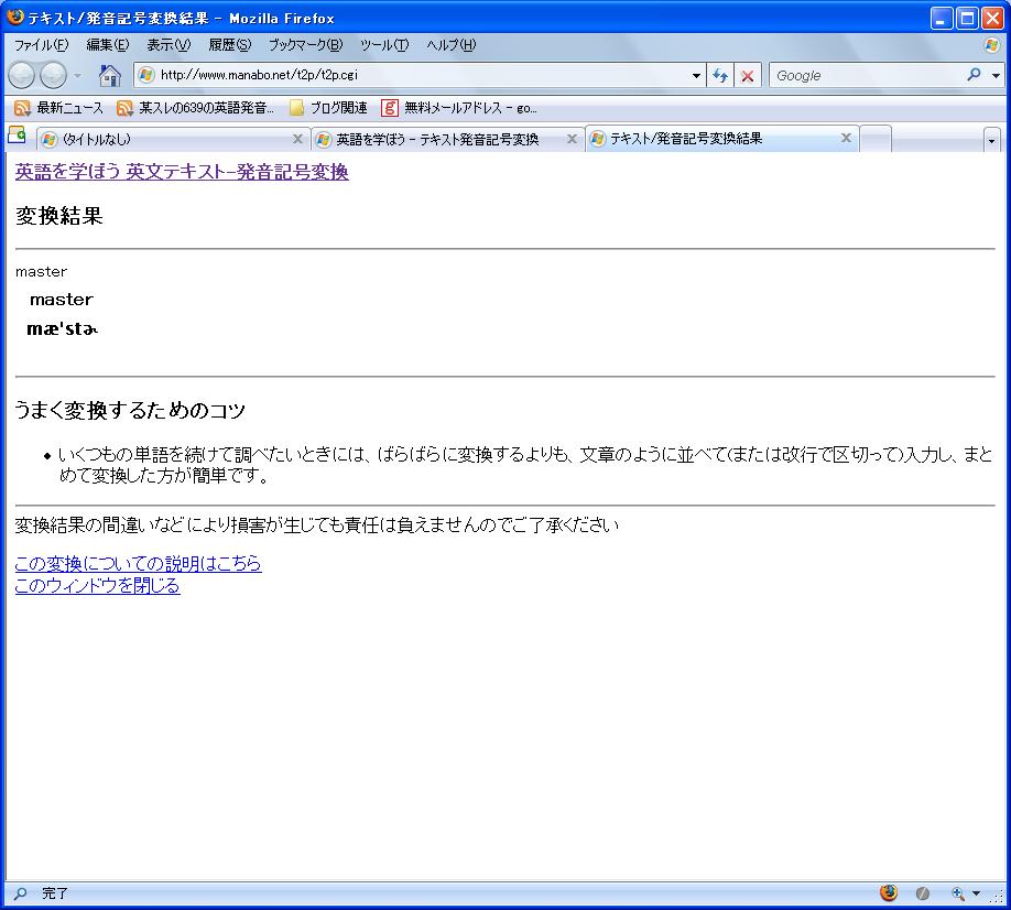 - サイト「テキスト発音記号変換」にて、単語 master の発音記号(ユニコード)を取得する。