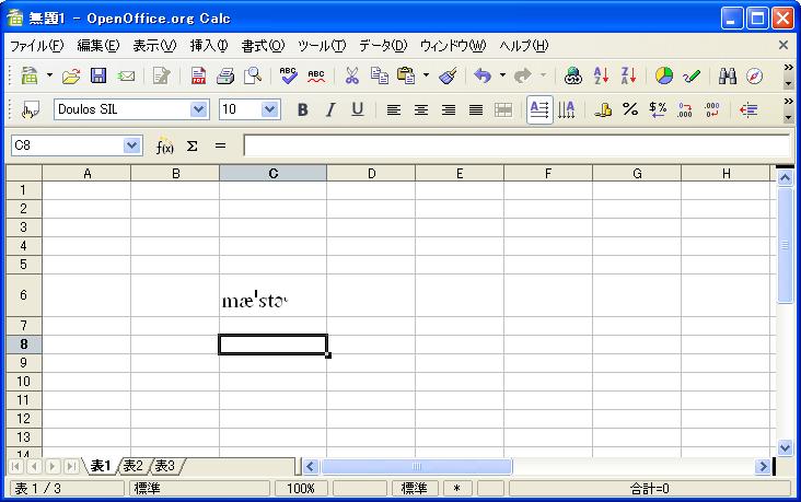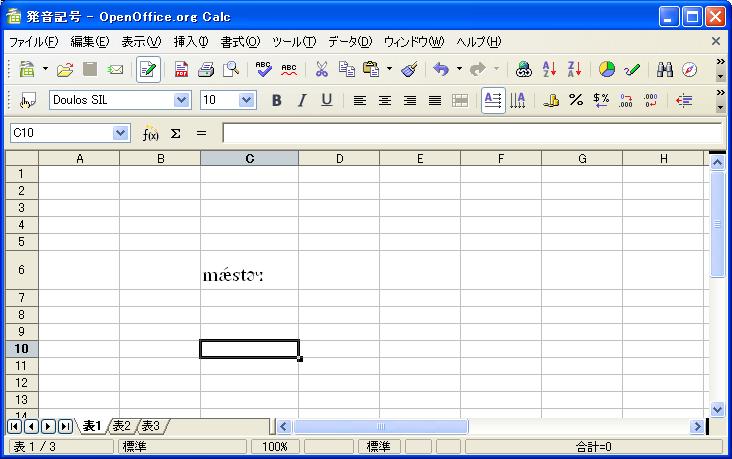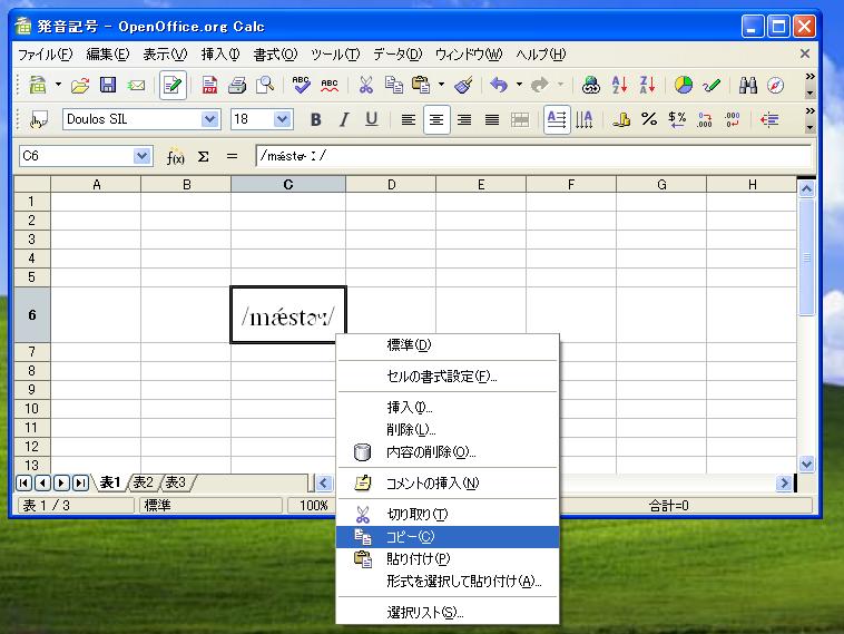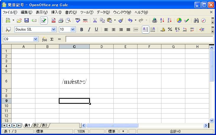 (1)OpenOffice Calcへ、上記1にて取得した発音記号(ユニコード)を貼り付ける。