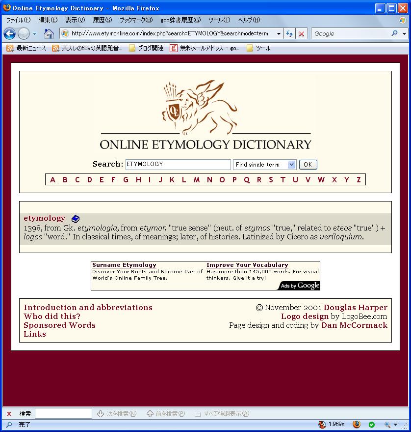 図1―2:単語 "etymology"の語源を検索した状態