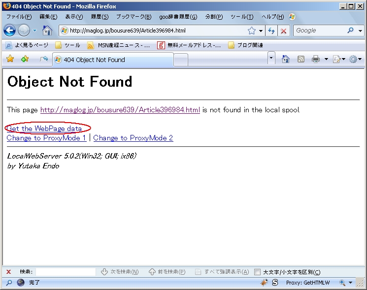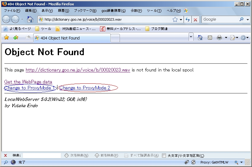"Proxy Mode2"は、表示されるページの内容を全てPC上に格納します。"Proxy Mode2"を使うと、うっかり、必要のないホームページの内容までPC上に格納してしまいがちです。ご注意を。