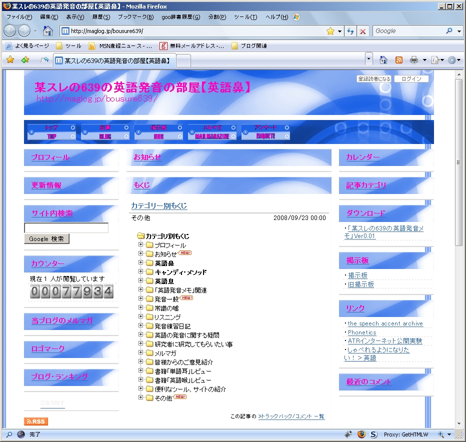 当ブログのページを頻繁に見て、発音練習されている方が少なからず、いらっしゃるようです。その様な方には、GETHTMLWというフリーソフトをお勧めしています。当ブログを丸ごとダウンロードして、ご自分のPC上で閲覧できます。サクサク動いて、快適に閲覧できます。